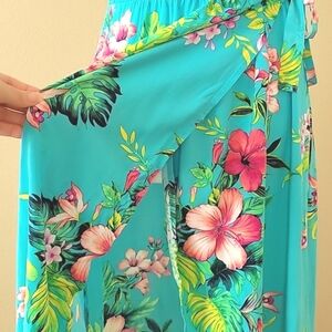 EUC Tommy Bahama Cerulean Fleur De Flora hibiscus tropical print wrap dress. Can also be uses as a swim coverup