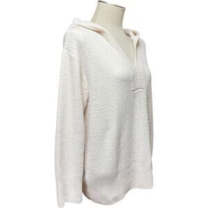Tommy Bahama Chenille Textured V-Neck Hoodie Cream Off White Medium
