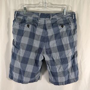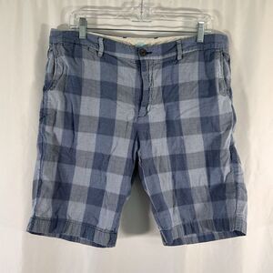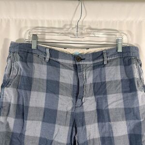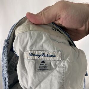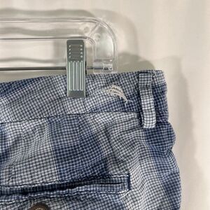 Tommy Bahama Chino Shorts Men's 35 Blue Plaid Button Zip 9.5" Inseam 100% Cotton