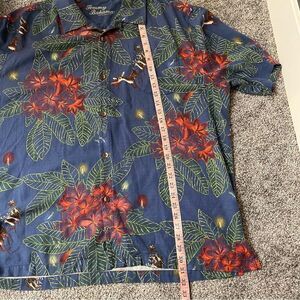 Tommy Bahama Christmas short sleeve Hawaiian shirt with reindeer and poinsettia