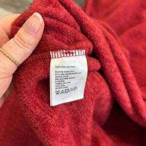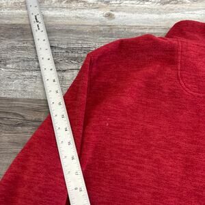 Tommy Bahama Cloud Peak Red Orange Mens Large Fish Logo 1/4 Zip Fleece Mock Pullover long sleeve embroidered chest logo 100% polyester lightweight hiking comfy cozy fuzzy fleece outdoorsy gorpcore sweater made in Vietnam, very small stained on back