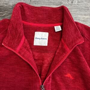 Tommy Bahama Cloud Peak Red Orange Mens L Fish Logo 1/4 Zip Fleece Mock Pullover