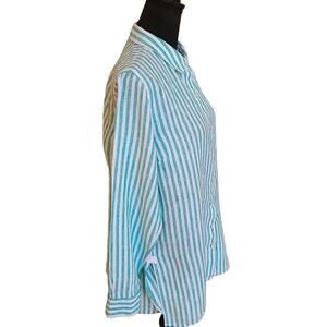 Tommy Bahama Coastalina Cabana Stripe Womens Linen Button Front Tunic Top Small