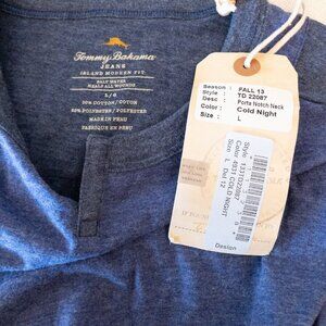 Tommy Bahama Cold Night Long Sleeve Notch Neck Tee Size L Blue Casual Top NWT