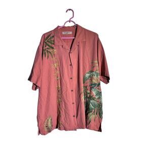 Tommy Bahama Coral 100% Silk Hawaiian Short Sleeves Button Down Shirt Size XL