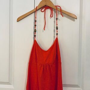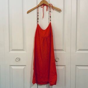 Tommy Bahama Coral Orange Sleeveless Cotton Halter Dress XS