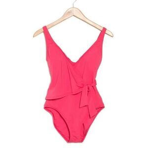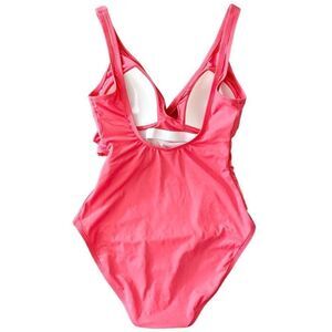 Tommy Bahama coral pink tie front wrap padded built in bra one piece high cut swimsuit.