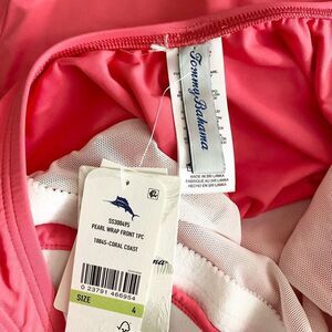 Tommy Bahama Coral Pink Tie Front Wrap One Piece Padded Swimsuit NWT Size 4