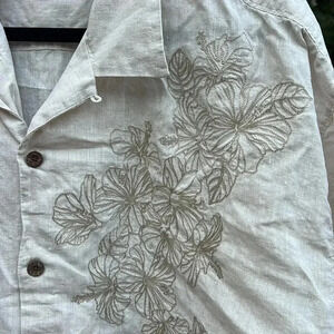 Tommy Bahama Cream Linen embroidered floral button down shirt XXL