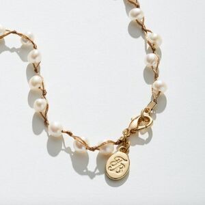 Zinc, nylon cord, freshwater pearl, cubic zirconia.