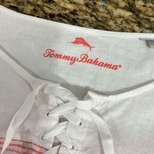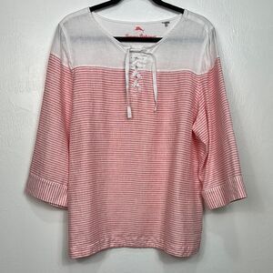 Tommy Bahama Crystalline Waters Lace-Up Linen Top Pink Striped Size XL