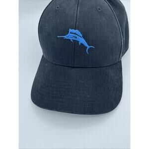 Tommy Bahama Dark Charcoal Grey baseball hat cap adjustable Hat blue Marlin EUC