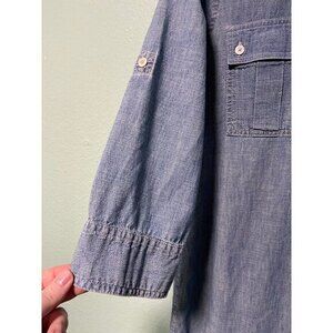 Tommy Bahama Denim Women's Blue Button Dress with Pockets and Roll Up Sleeves S