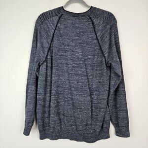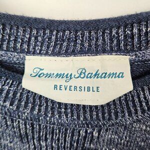 Tommy Bahama Di Sabbia Flip Reversible Crew Sweater in Blue Swell (Navy blue heather). Missing size/care tag, best size approximation is Medium, please see measurements in description. Great pre-owned condition.