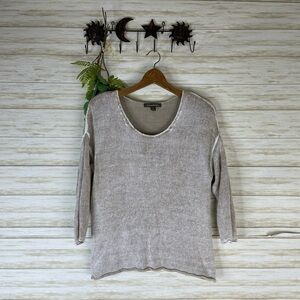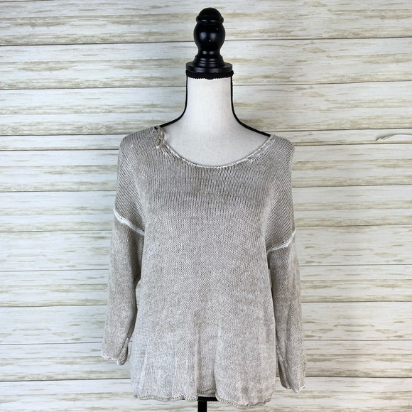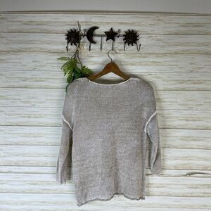 Previously loved, no holes or stains. Linen blend knit. Taupe-y, slightly green hue. Coastal grandma vibes