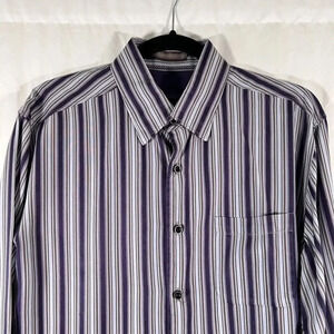 Tommy Bahama Dress Shirt Men's Medium Purple Striped 100% Silk Button Up