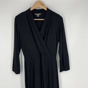 Tommy Bahama Dress Size XS Women Black Tambour Wrap Knit Midi Stretch 3/4 Sleeve