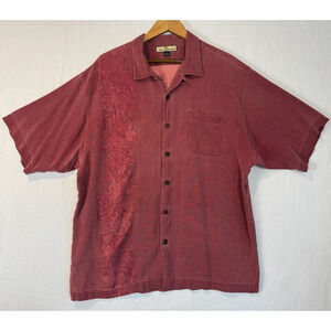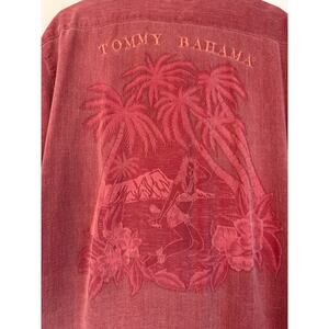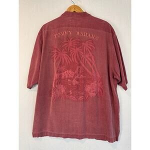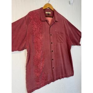 Tommy Bahama Embroidered Hawaiian Silk Camp Shirt XL Girl Floral Tropical Red
