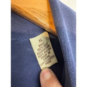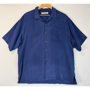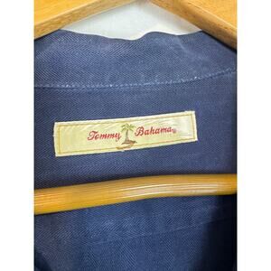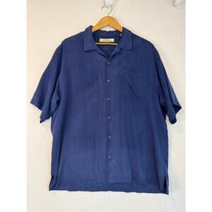 Tommy Bahama Embroidered "Lost and Swingin" Silk Camp Shirt XL Hawaiian Blue