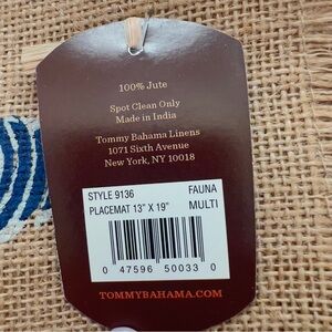 Tommy Bahama Fauna Placemats Tan Blue Jute Burlap Set of 4 NWT