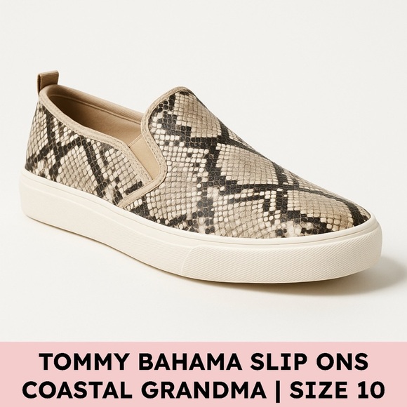 Tommy Bahama Faux Snakeskin Slip-On Sneakers Neutral Casualcore Size 10 Resort