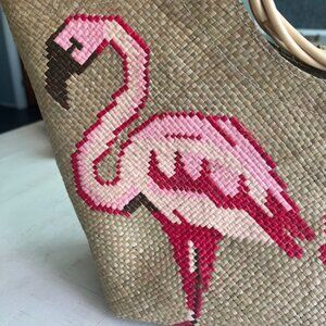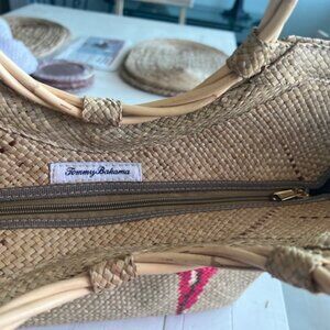 Woven zipper tote bag, wild grass and embroidered palm leaves. New without tags