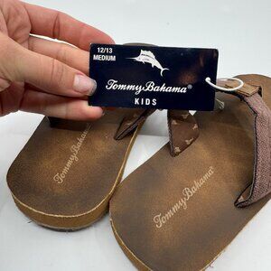 Tommy Bahama Flip Flops Sandals Kids Size Medium 12/13 Brown Beach Leather NEW