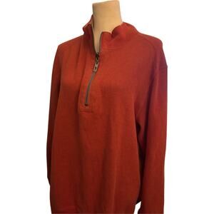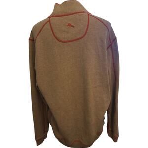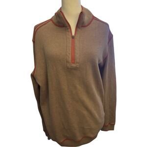 Tommy Bahama Flipshore Half Zip Reversible Pullover, Orange, Size Large. Own the changing seasons with this luxe sweatshirt, made to give you the advantage against cooler weather. Fully reversible with stylish contrast stitching, this two in one combo embodies your versatile spirit while keeping you comfortable. 79% cotton, 21% Tencel. Please note measurements -- there are no size tags. Retails for $110.