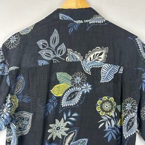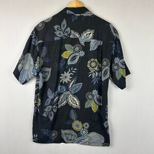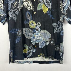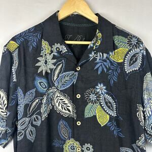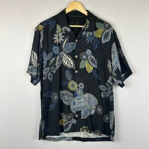 Tommy Bahama Floral 100% Silk Button Down Shirt Blue Beach Tropical Men's Size M