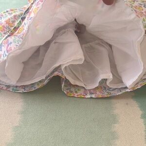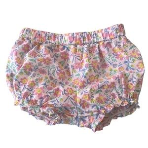 Tommy Bahama, Floral Print, 3 Piece Outfit, Top Bottom & Headband. Top/dress is sleeveless with ruffle detail and fully lined. Open V neck back with attached bow and 2 snap closure. Elastic waistband bottoms. Matching headband with bow. 100% cotton. Size 3-6 months. See photos for measurement to ensure fit.