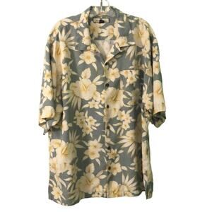 Tommy Bahama Floral Print Hawaiian Silk Shirt Mens Size XL
