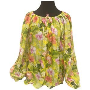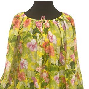 Tommy Bahama Floral Tie Front Blouse Pink Orange Medium