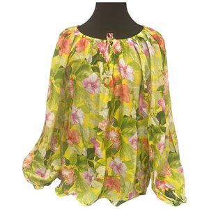 Tommy Bahama Floral Tie-Front Blouse – Pink & Orange | Flowy Boho Top Size M