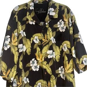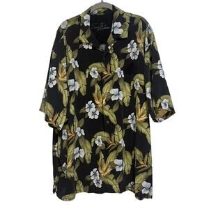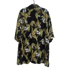 Tommy Bahama Floral Tropical Hawaiian Silk Button Down Shirt Black XXL Vintage