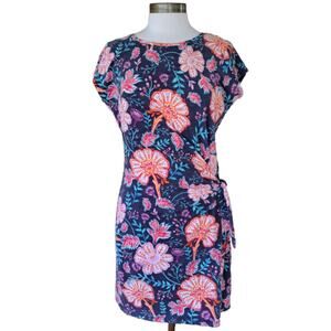 Tommy Bahama Flowers Of India T-Shirt Mini Dress Size Small Island Navy Multicolor