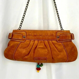 Tommy Bahama Genuine Leather Clutch Purse Tan Tassels Aruba Chain Strap EUC