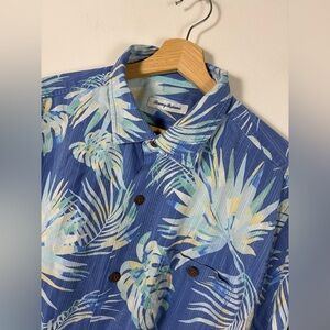Tommy Bahama Geo Islandzone Hawaiian Shirt Men XL Silk Blend Blue Floral Coolmax