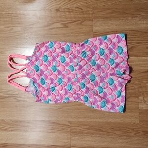 Tommy Bahama Girls Romper M 7/8) Cotton White Pink Teal Shells Tropical