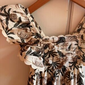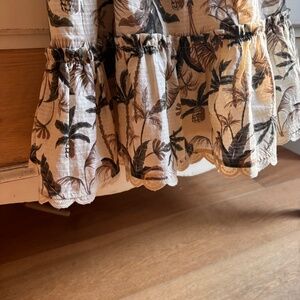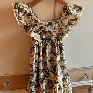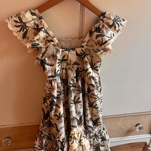 Adorable and timeless, this little dress is perfect for special occasions or everyday charm. Featuring a beautiful cream base with a delicate botanical print, it has fluttery ruffle sleeves trimmed with lace for an extra sweet touch. The gathered bodice provides intentional detail, while the tiered skirt adds a flowy silhouette that’s easy to twirl in.