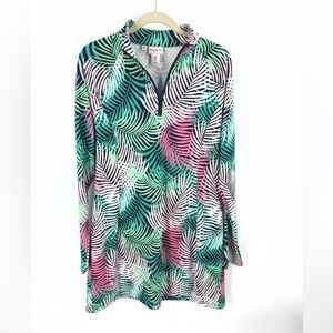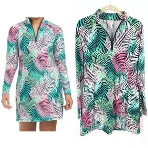 Tommy Bahama Golf Dress Womens Size L Palm Print 1/4 Zip Long Sleeve Performance