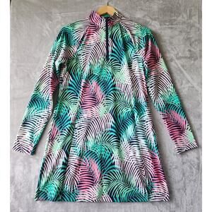 Tommy Bahama Golf Dress Womens Size Medium Tropical Floral Palm Print 1/4 Zip