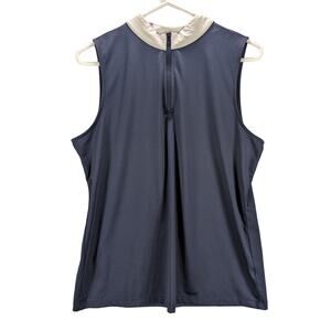 Tommy Bahama Golf Shirt Womens Large Sleeveless Navy Blue 1/4 zip Active Preppy