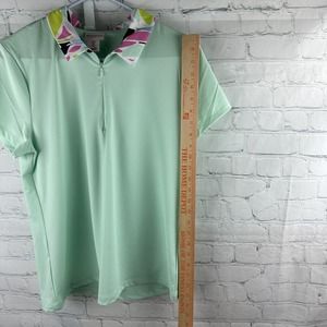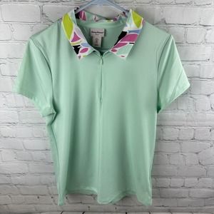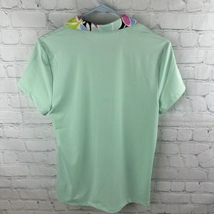 Tommy Bahama Golf Sleeveless Polo Shirt Women Large Mint 1/4 Zip Floral Collar