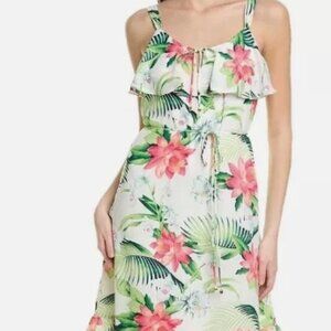 Tommy Bahama Grand Grove Sleeveless Maxi Dress Tropical Ruffled Tie Cord Belt Sm