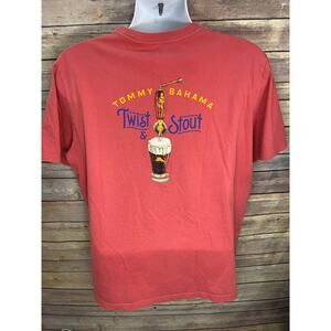 Tommy Bahama men’s short sleeve tee in size Large. Red cotton blend with “Twist and Stout” beer-themed graphic. Relaxed fit with island-inspired style—ideal for coastal bundles, brewery themes, or casual resort wear.