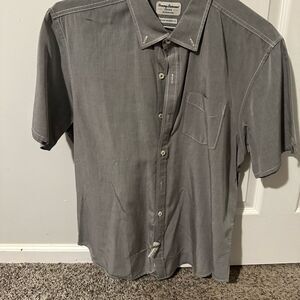 Elevate your wardrobe with this stylish gray shirt from Tommy Bahama. Perfect for any occasion, this shirt offers both comfort and elegance.