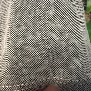 Two tiny pinholes as shown. One stitching flaw on back. Price reflects.