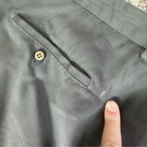 These flat front style gray chino pants from Tommy Bahama are made of the softest and most beautiful silk blend fabric. They’re lightweight and not stiff at all. In great condition. The only sign of wear is some very slight fraying where the back pockets are attached (see pictures). But it’s not noticeable unless you look up close since it’s so small. These are a high quality pant for a great price. 40” Waist 30” Inseam.