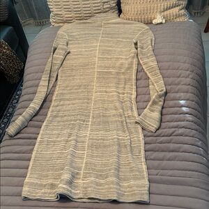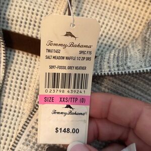 Elegant gray textured sweater with zip-up front. Perfect for layering. Size is XXS But it fit me and I’m a size 6, just never got to wear it in Florida