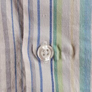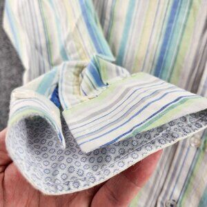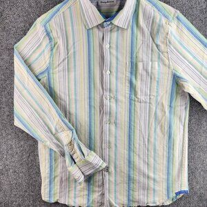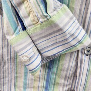 Tommy Bahama Green Blue Striped Long Sleeve Woven Large Cotton Silk Spandex